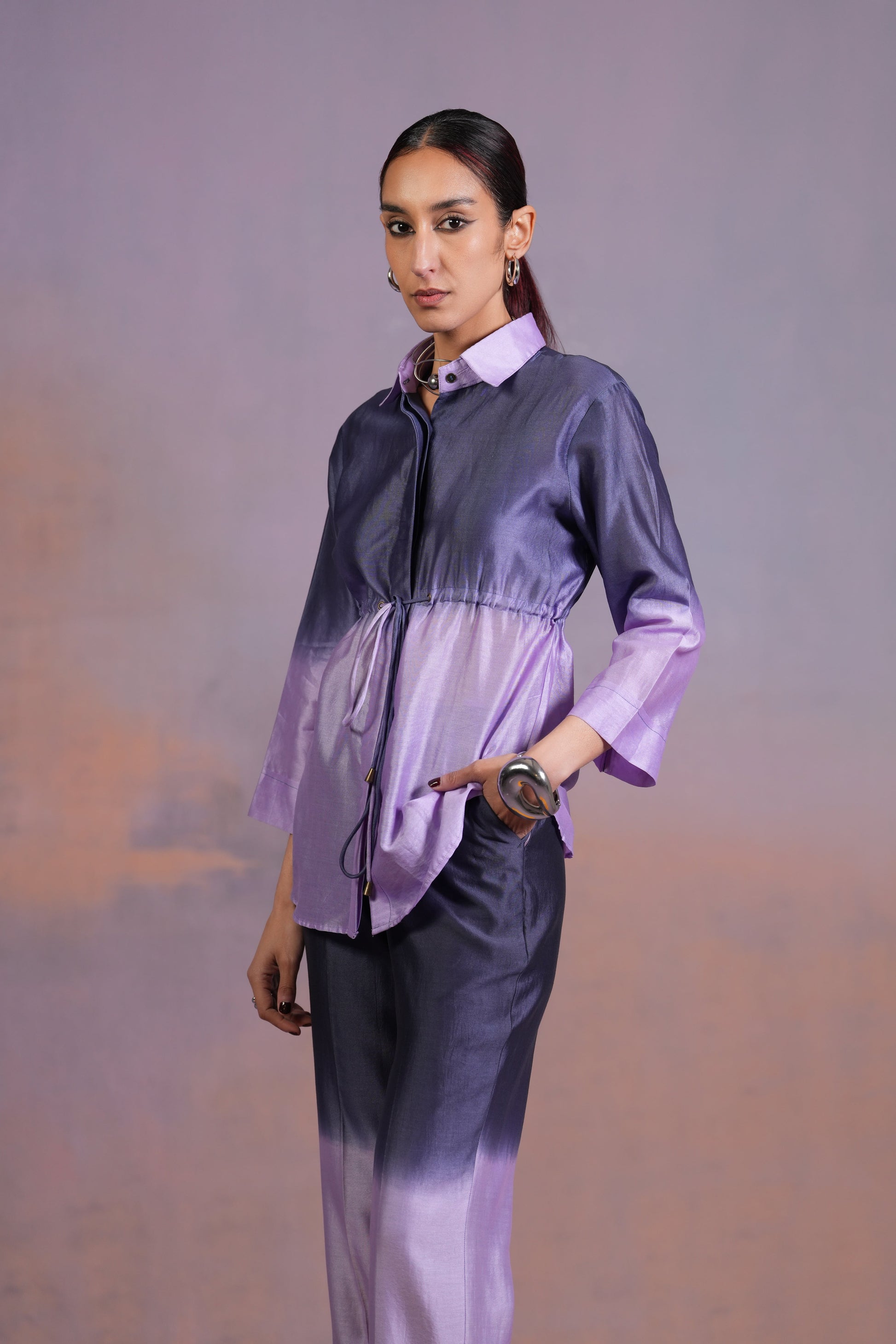 Collared easy fitting shirt with short sleeves hand-dyed.